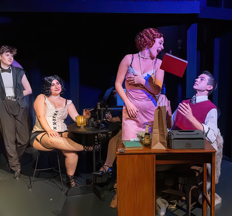 In a Berlin nightclub, as the 1920s draw to a close, a garish Master of Ceremonies welcomes the audience and assures them they will forget all their troubles at the Cabaret. With the Emcee’s bawdy songs as wry commentary, Cabaret explores the dark, heady and tumultuous life of Berlin’s natives and expatriates as Germany slowly yields to the emerging Third Reich. Cliff, a young American writer newly arrived in Berlin, is immediately taken with English singer Sally Bowles. Meanwhile, Fräulein Schneider, proprietor of Cliff and Sally’s boarding house, tentatively begins a romance with Herr Schultz, a mild-mannered fruit seller who happens to be Jewish. Musical numbers include “Willkommen,” “Cabaret,” “Don’t Tell Mama” and “Two Ladies.”
